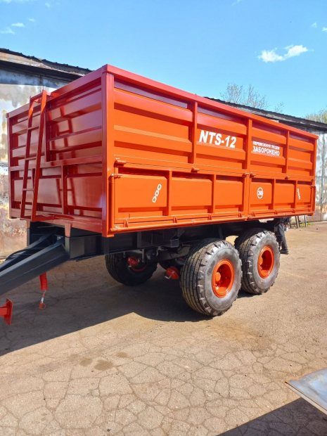 Причеп тракторний НТС-12 — це сільськогосподарський самоскидний причіп, який використовують для перевезення різних вантажів: зерна, силосу, добрив, ґрунту та інших матеріалів. Його головна особливість — можливість розвантаження на три сторони: назад, вліво і вправо. Це дуже зручно під час роботи в полі або на обмежених майданчиках, де немає можливості розвернути техніку.